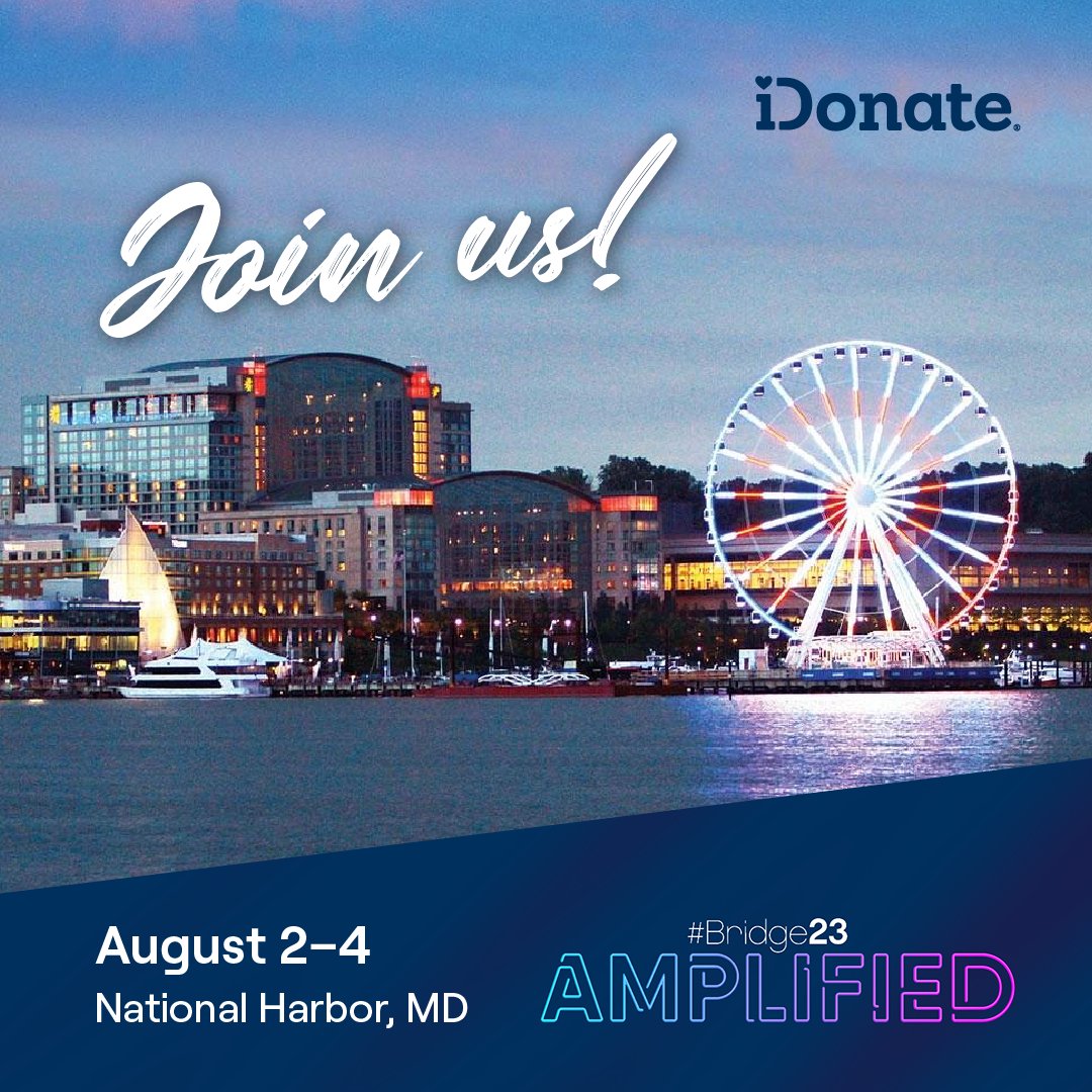 @idonate The iDonate team is in National Harbor this week attending the Bridge conference! Stop by booth #610 to learn how we empower nonprofit's like you to reach, convert, and retain more of today's donors. We will also giving away $250 for yourself and $250 for your organization.